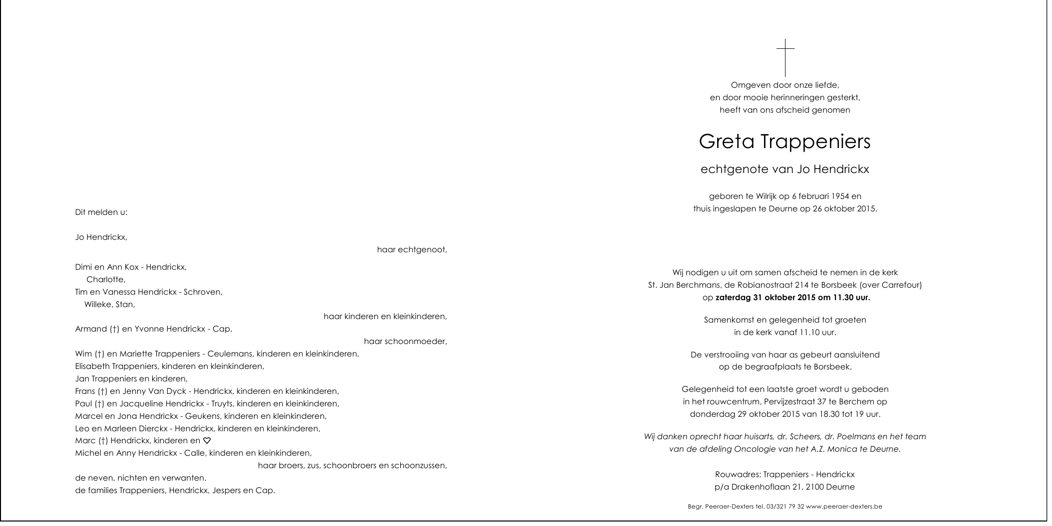 Overleden te Deurne (Antwerpen) (2100) op maandag 26 oktober 2015 op 61-jarige leeftijd