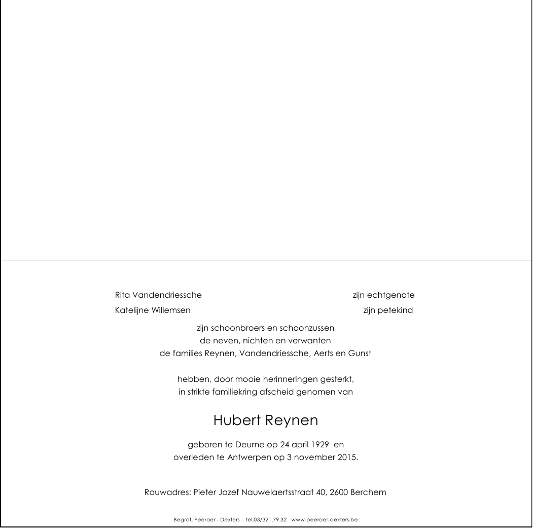 Overlijdensbericht de heer Hubert Reynen