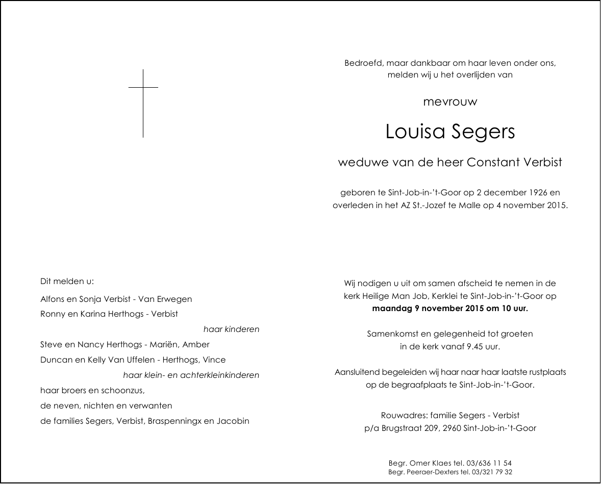 Overleden te Malle (2390) op woensdag 4 november 2015 op 88-jarige leeftijd