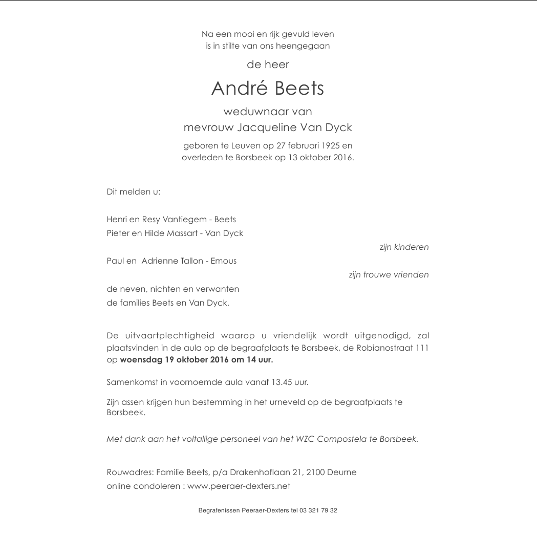 Overleden te Borsbeek (Antw.) (2150) op donderdag 13 oktober 2016 op 91-jarige leeftijd