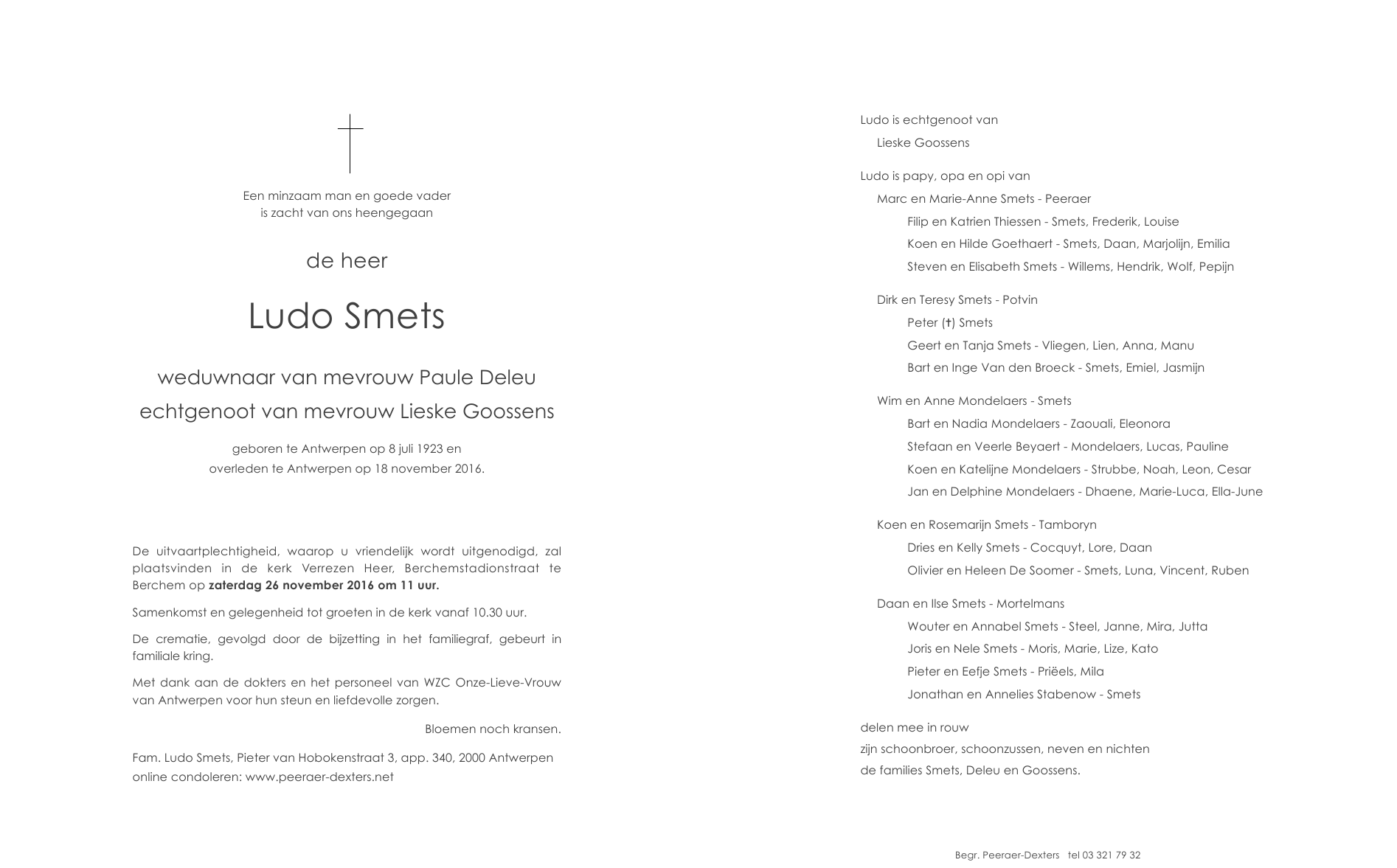Overleden te Antwerpen (2000) op vrijdag 18 november 2016 op 93-jarige leeftijd
