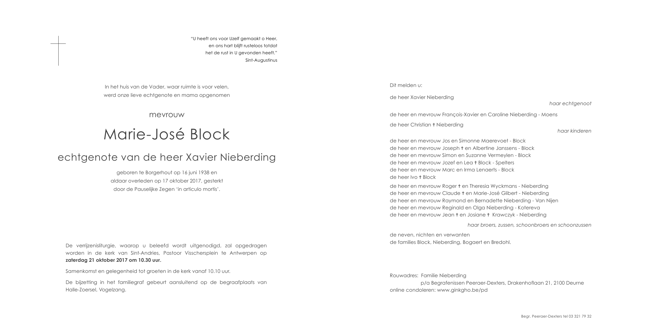 Overleden te Borgerhout (Antwerpen) (2140) op dinsdag 17 oktober 2017 op 79-jarige leeftijd