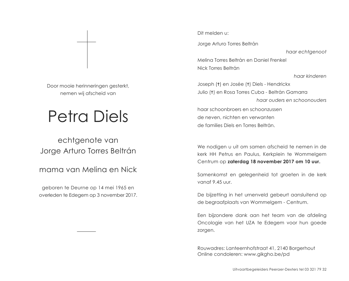 Overleden te Edegem (2650) op vrijdag 3 november 2017 op 52-jarige leeftijd