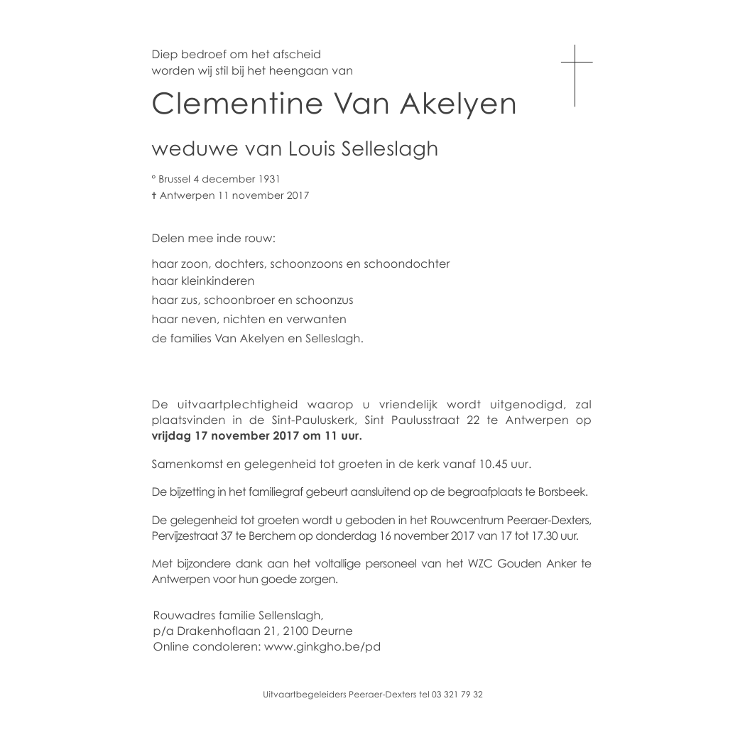 Overleden te Antwerpen (2000) op zaterdag 11 november 2017 op 85-jarige leeftijd