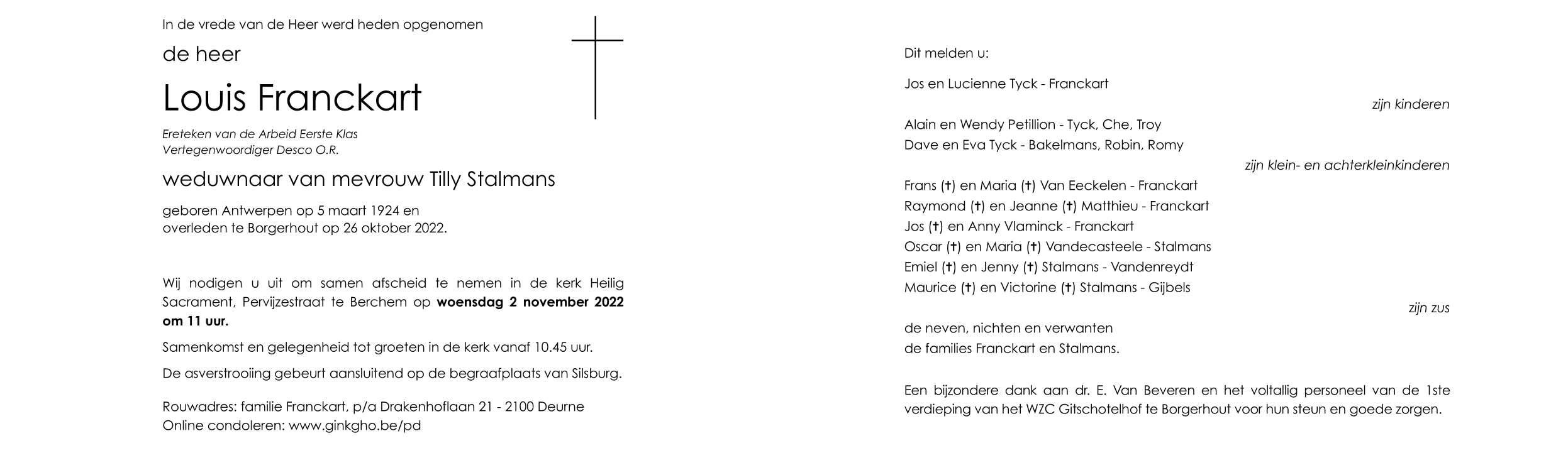 Overleden te Borgerhout (Antwerpen) (2140) op woensdag 26 oktober 2022 op 98-jarige leeftijd