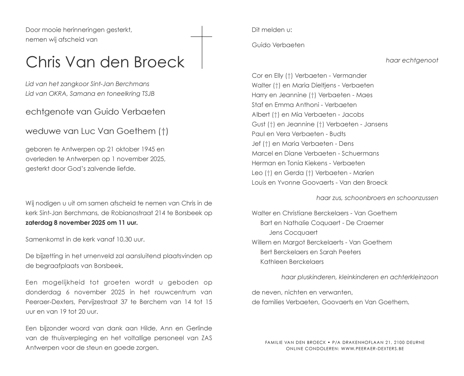 Overleden te Antwerpen (2020) op zaterdag 1 november 2025 op 80-jarige leeftijd