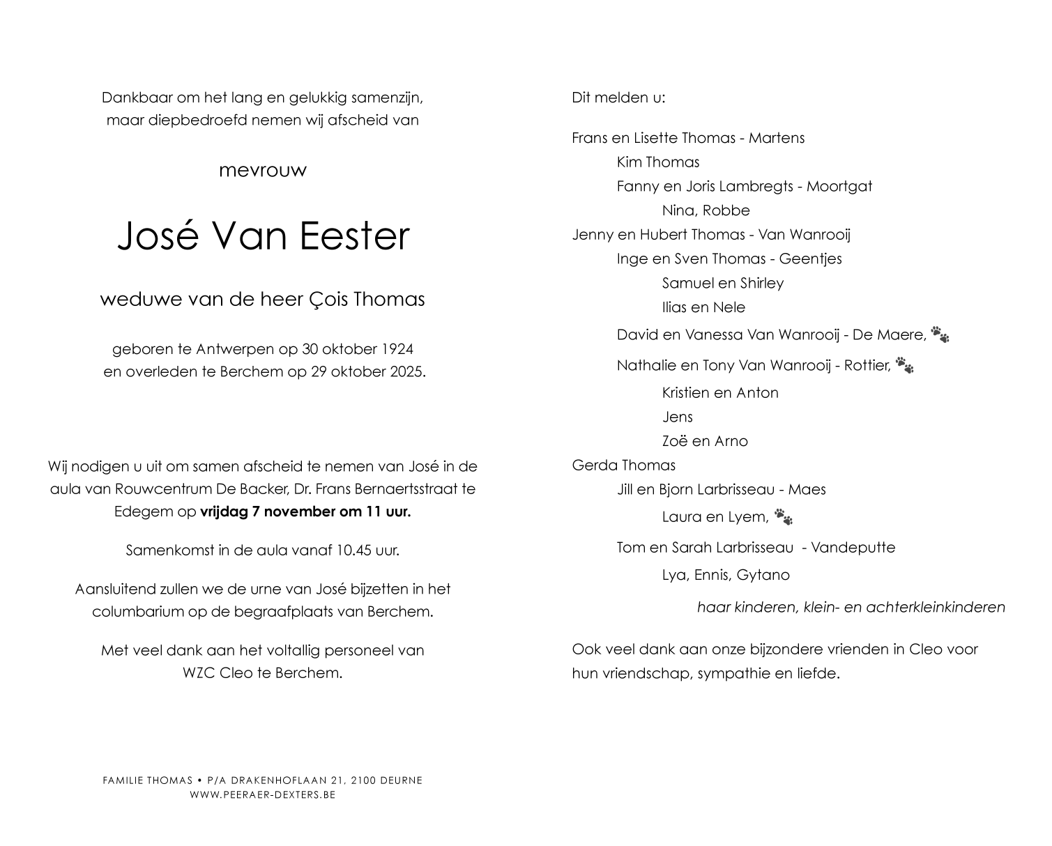 Overleden te Berchem (Antwerpen) (2600) op woensdag 29 oktober 2025 op 100-jarige leeftijd