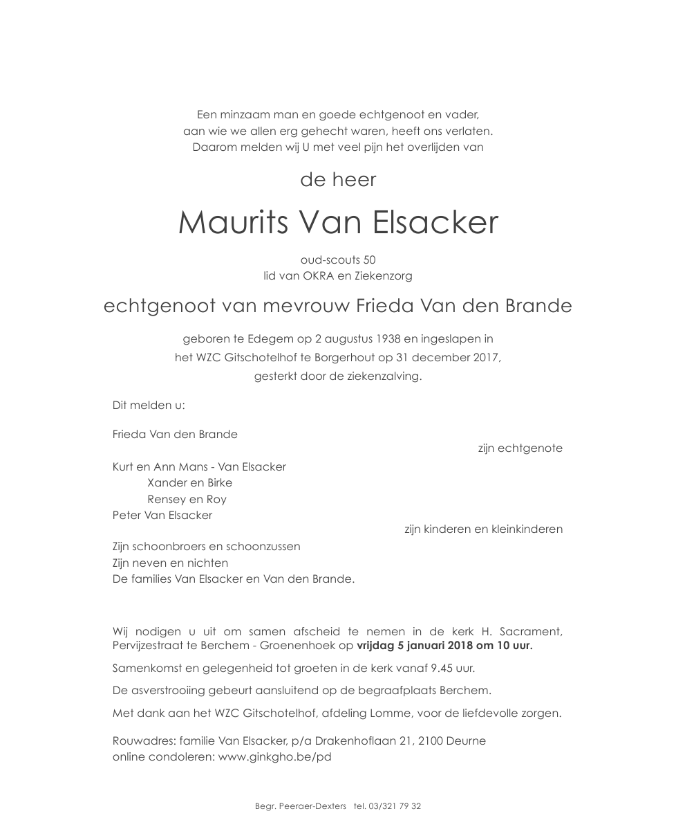 Overleden te Borgerhout (Antwerpen) (2140) op zondag 31 december 2017 op 79-jarige leeftijd