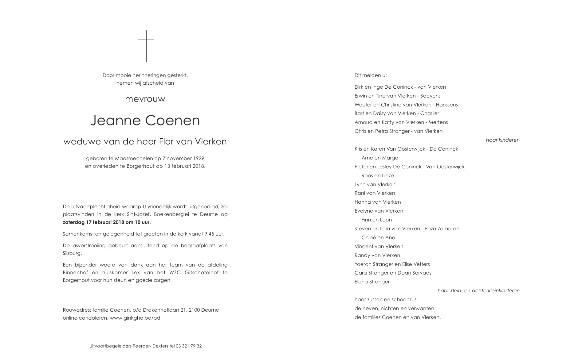 Overleden te Borgerhout (Antwerpen) (2140) op dinsdag 13 februari 2018 op 88-jarige leeftijd