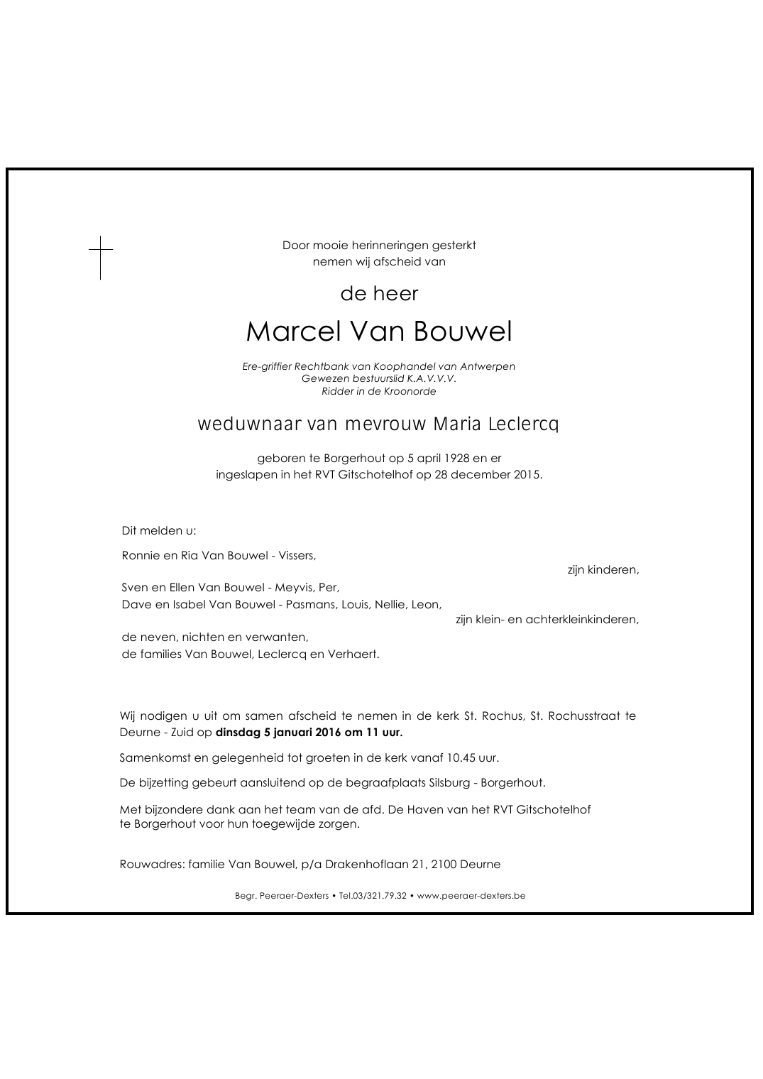 Overleden te Borgerhout (Antwerpen) (2140) op maandag 28 december 2015 op 87-jarige leeftijd