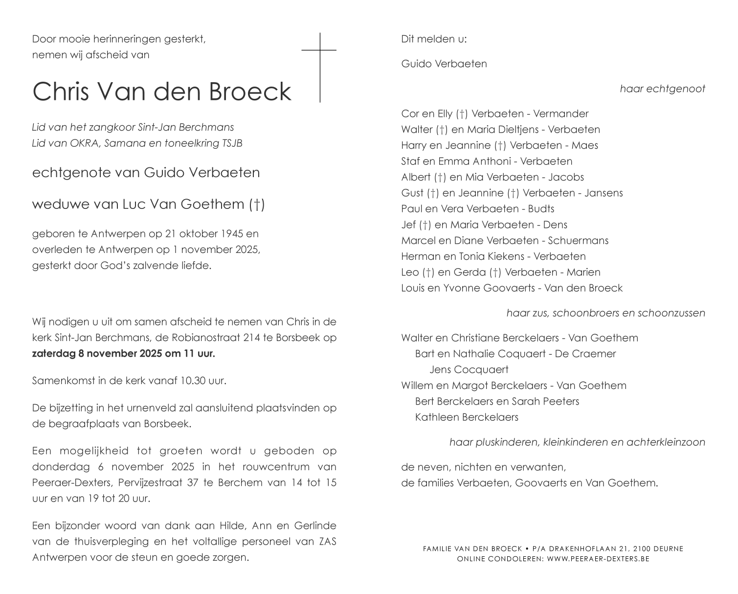 Overleden te Antwerpen (2020) op zaterdag 1 november 2025 op 80-jarige leeftijd