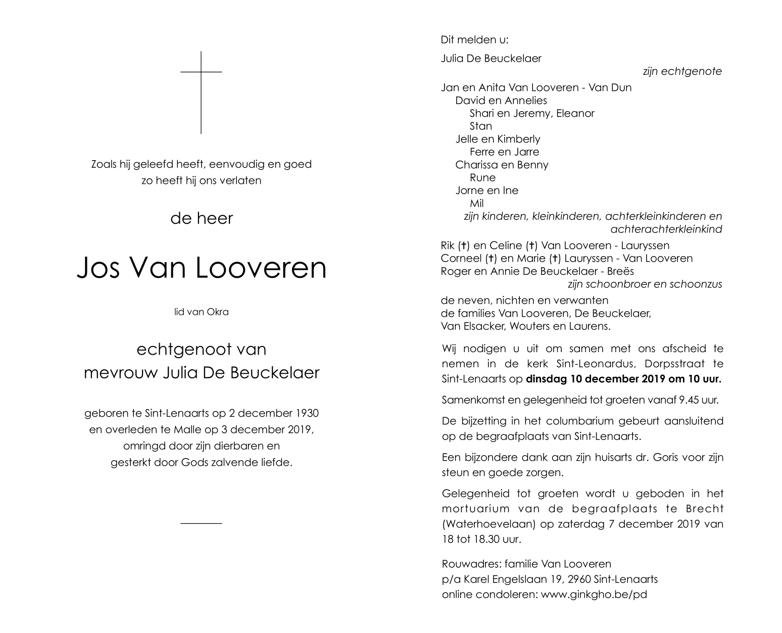 Overleden te Malle (2390) op dinsdag 3 december 2019 op 89-jarige leeftijd