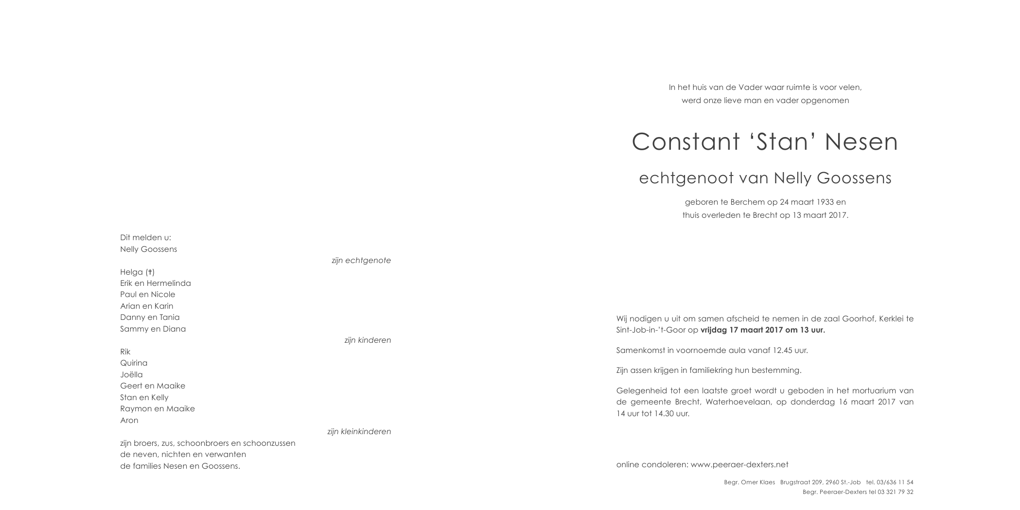 Overleden te Brecht (2960) op maandag 13 maart 2017 op 83-jarige leeftijd