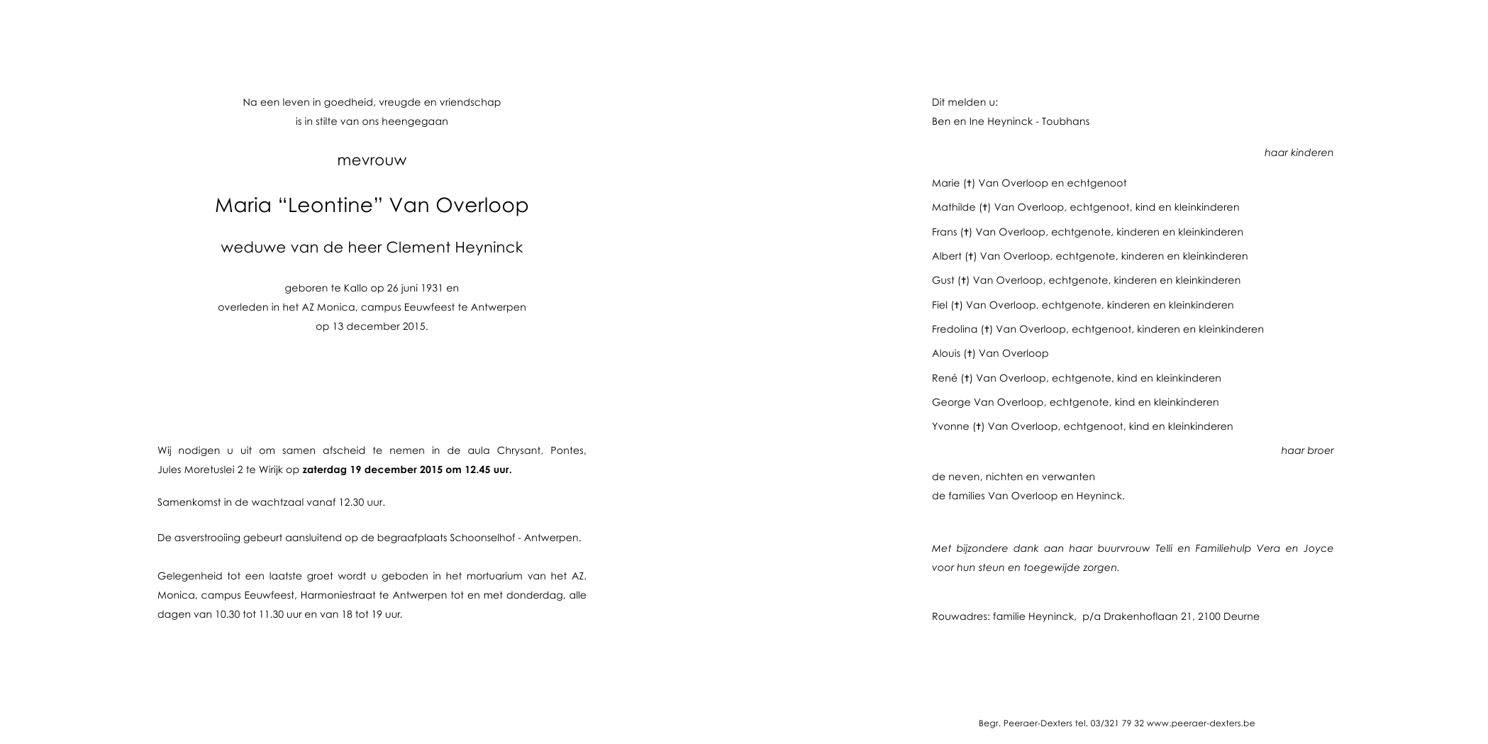 Overleden te Antwerpen (2018) op maandag 14 december 2015 op 84-jarige leeftijd