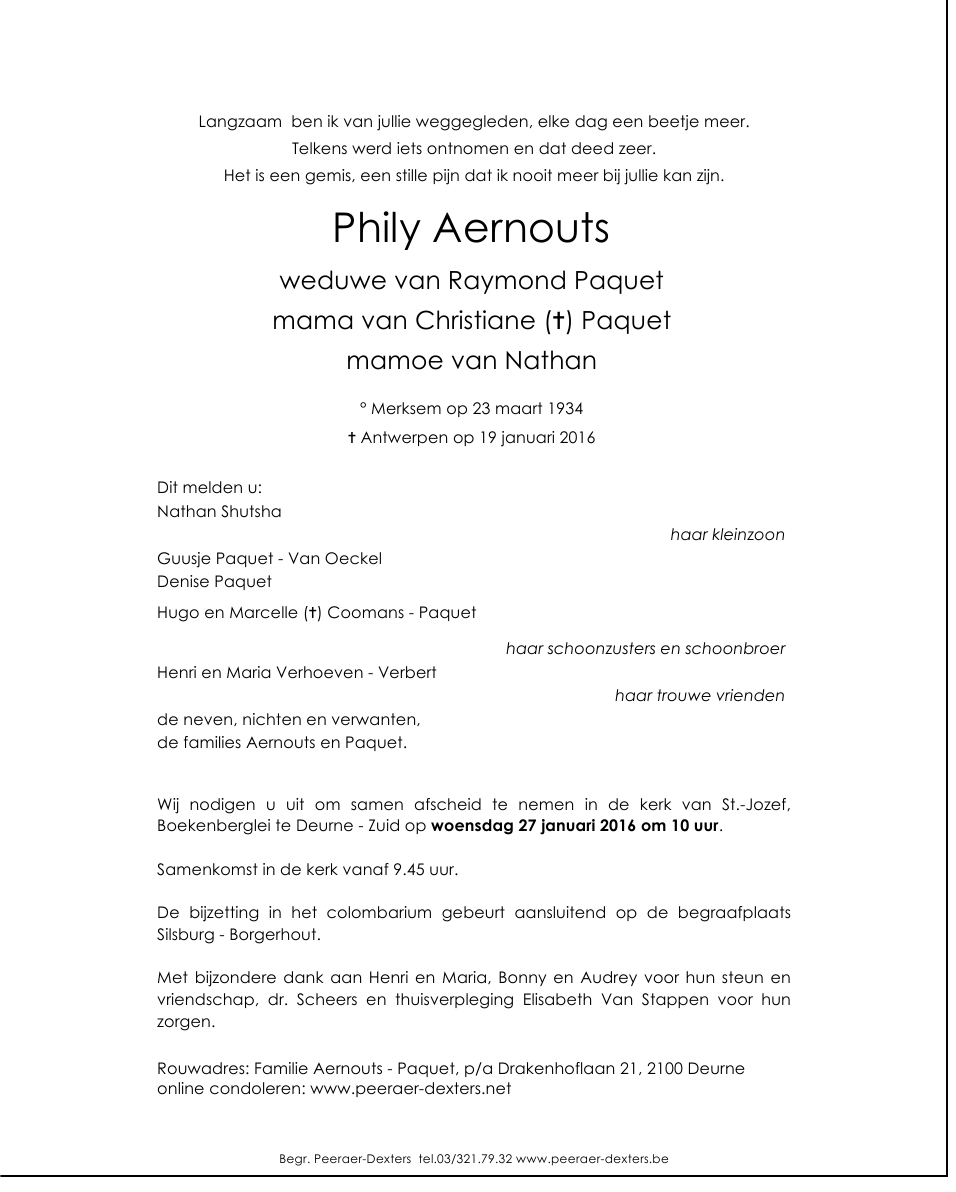 Overleden te Antwerpen (2018) op dinsdag 19 januari 2016 op 81-jarige leeftijd