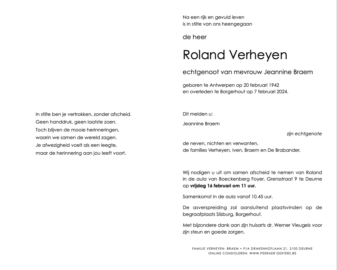 Overleden te Borgerhout (Antwerpen) (2140) op woensdag 7 februari 2024 op 81-jarige leeftijd