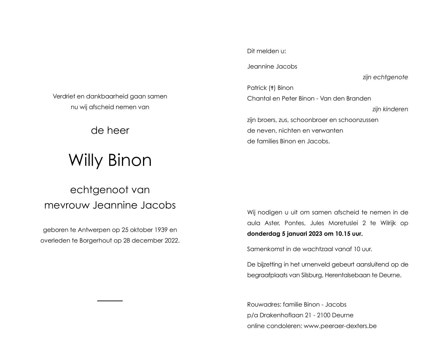 de heer Willy Binon