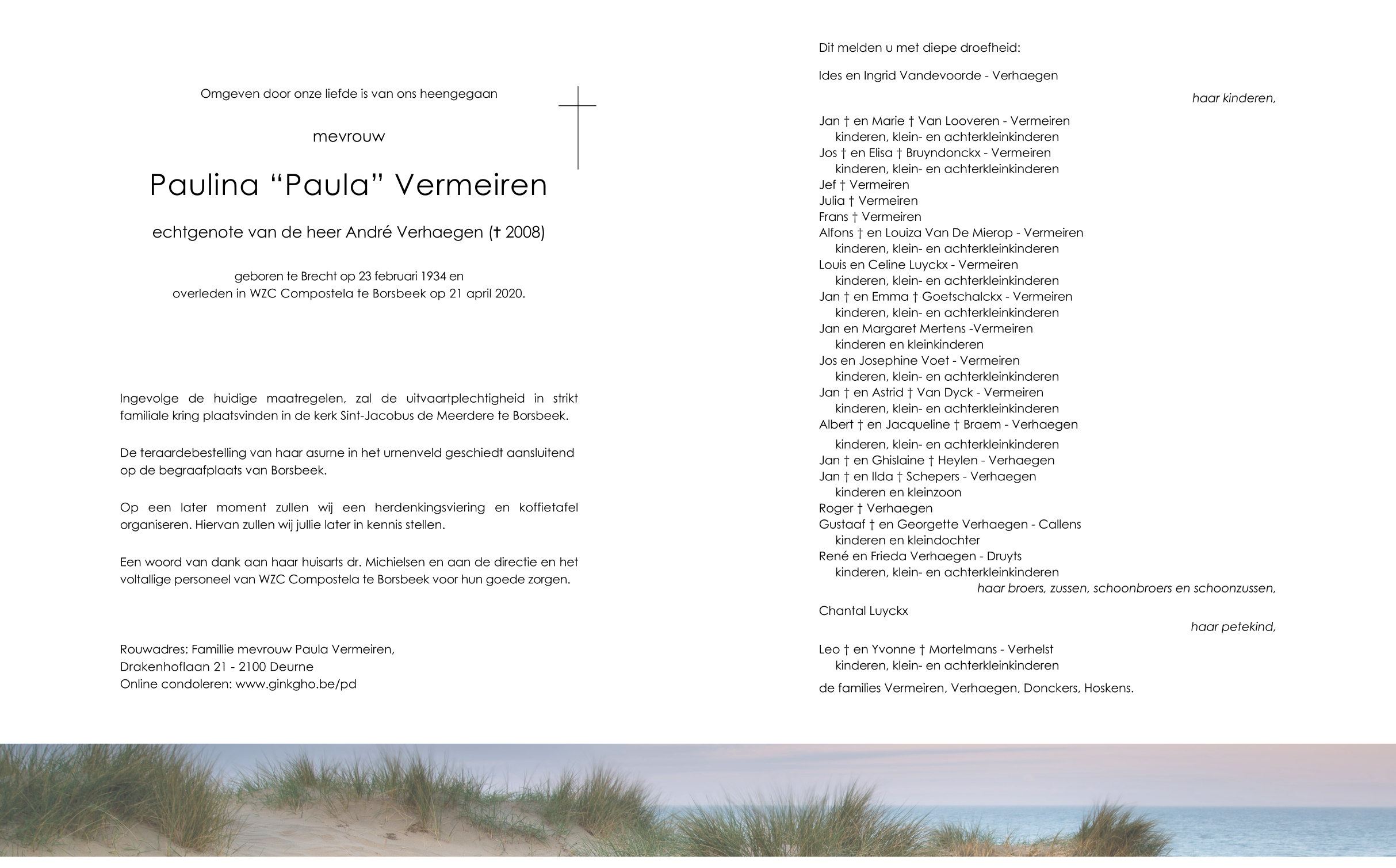 Overleden te Borsbeek (Antw.) (2150) op dinsdag 21 april 2020 op 86-jarige leeftijd