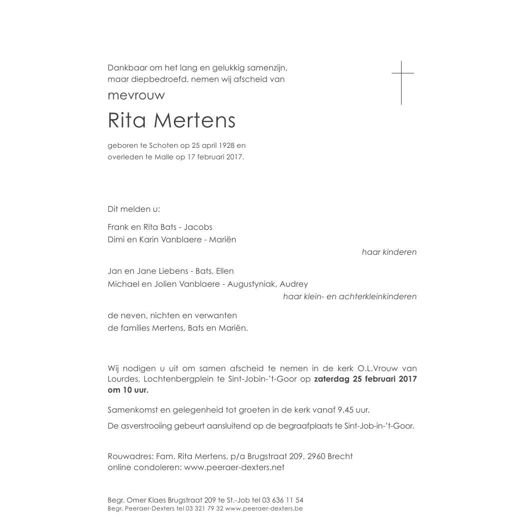 Overleden te Malle (2390) op vrijdag 17 februari 2017 op 88-jarige leeftijd