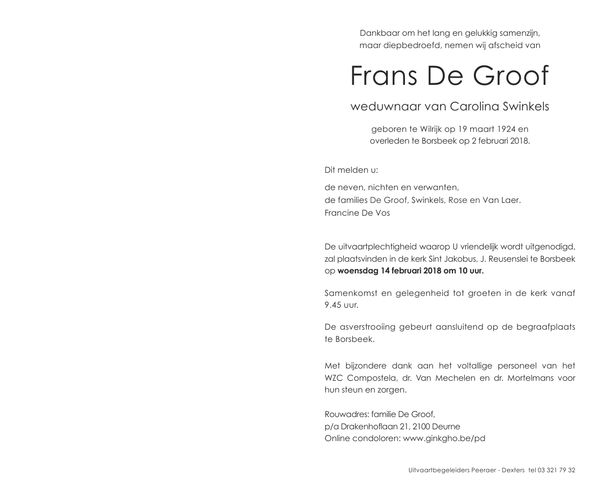 Overleden te Borsbeek (Antw.) (2150) op vrijdag 2 februari 2018 op 93-jarige leeftijd