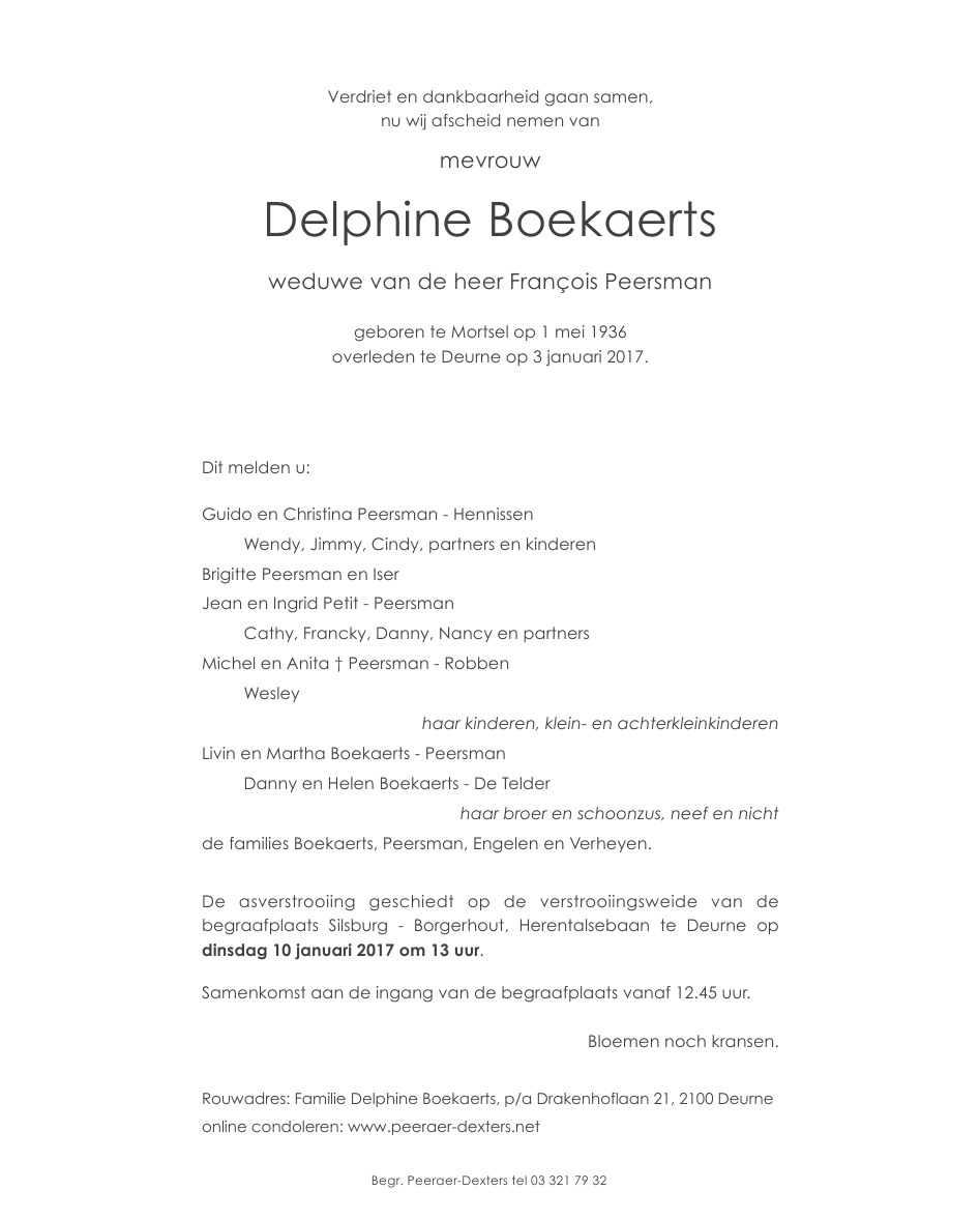 Overleden te Deurne (Antwerpen) (2100) op dinsdag 3 januari 2017 op 80-jarige leeftijd