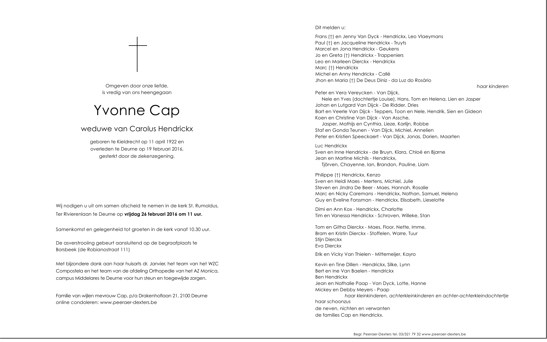 Overleden te Deurne (Antwerpen) (2100) op vrijdag 19 februari 2016 op 93-jarige leeftijd
