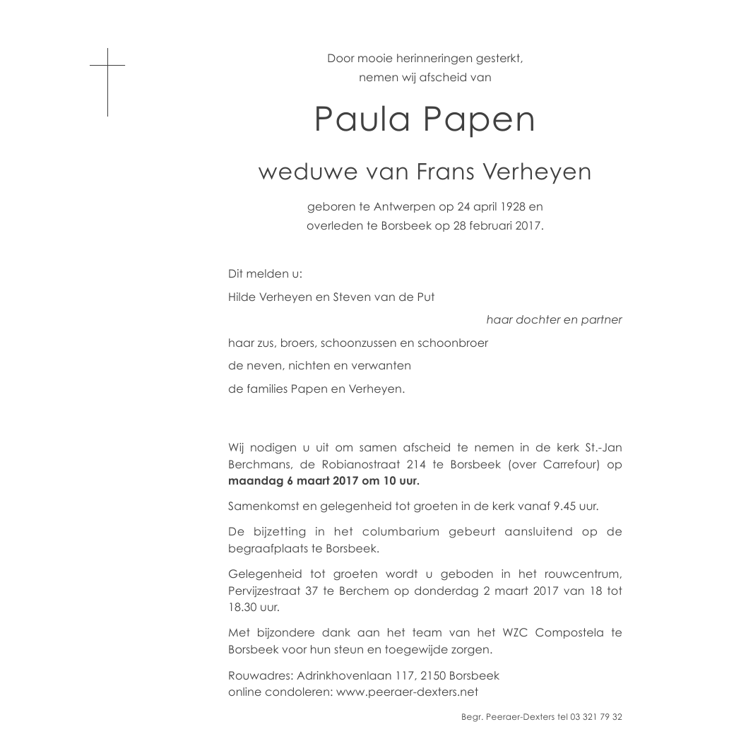 Overleden te Borsbeek (Antw.) (2150) op dinsdag 28 februari 2017 op 88-jarige leeftijd