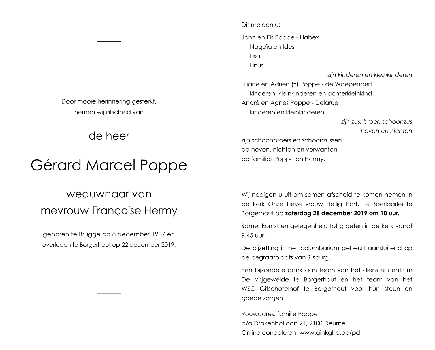 Overleden te Borgerhout (Antwerpen) (2140) op zondag 22 december 2019 op 82-jarige leeftijd