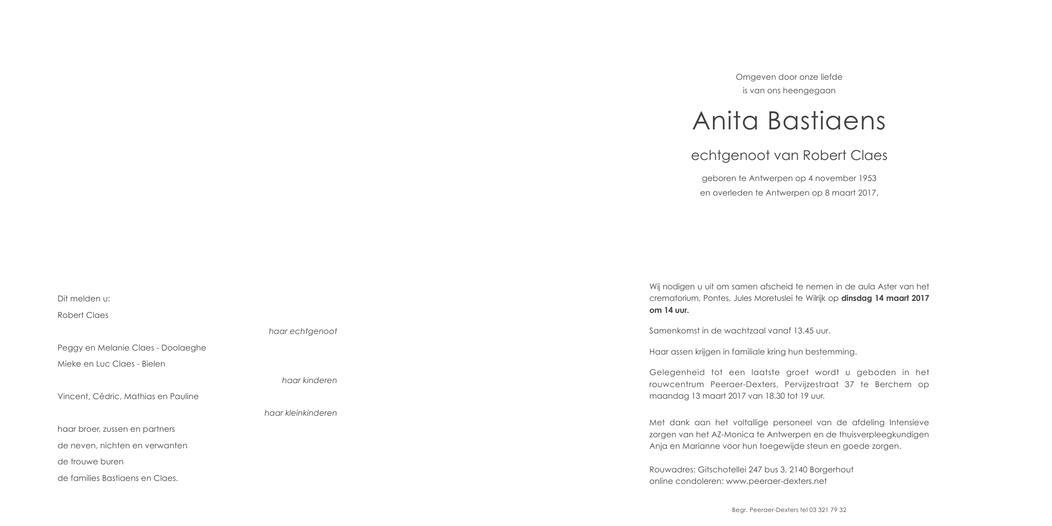 Overleden te Antwerpen (2018) op woensdag 8 maart 2017 op 63-jarige leeftijd