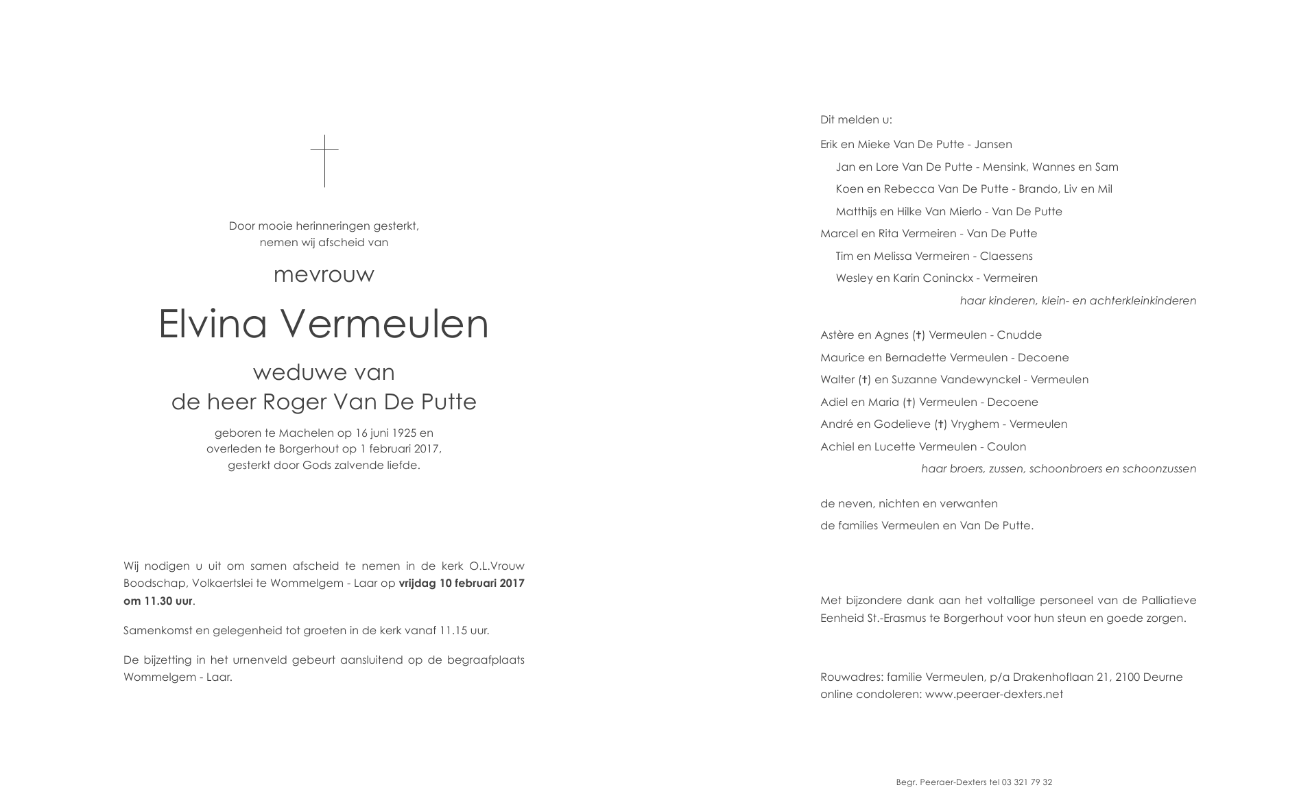 Overleden te Borgerhout (Antwerpen) (2140) op woensdag 1 februari 2017 op 91-jarige leeftijd