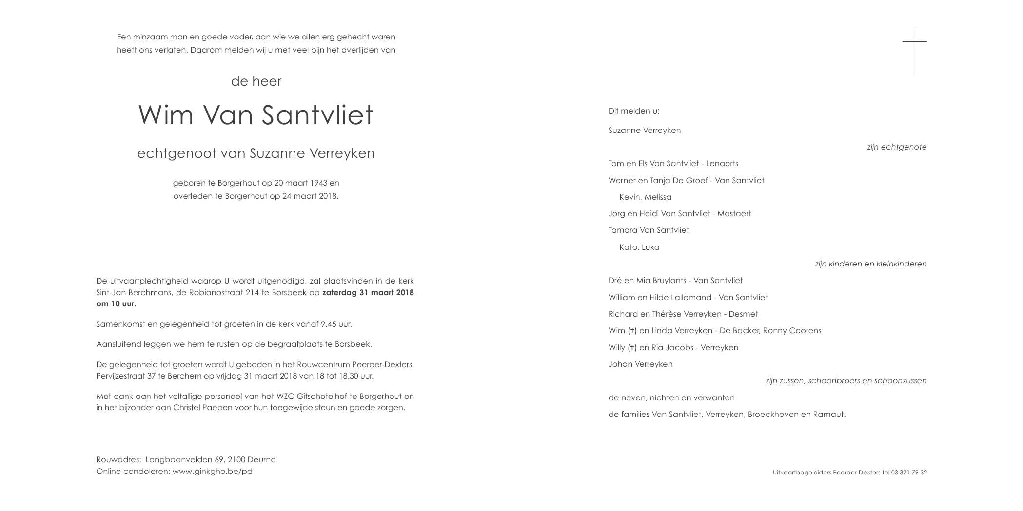 Overleden te Borgerhout (Antwerpen) (2140) op zaterdag 24 maart 2018 op 75-jarige leeftijd