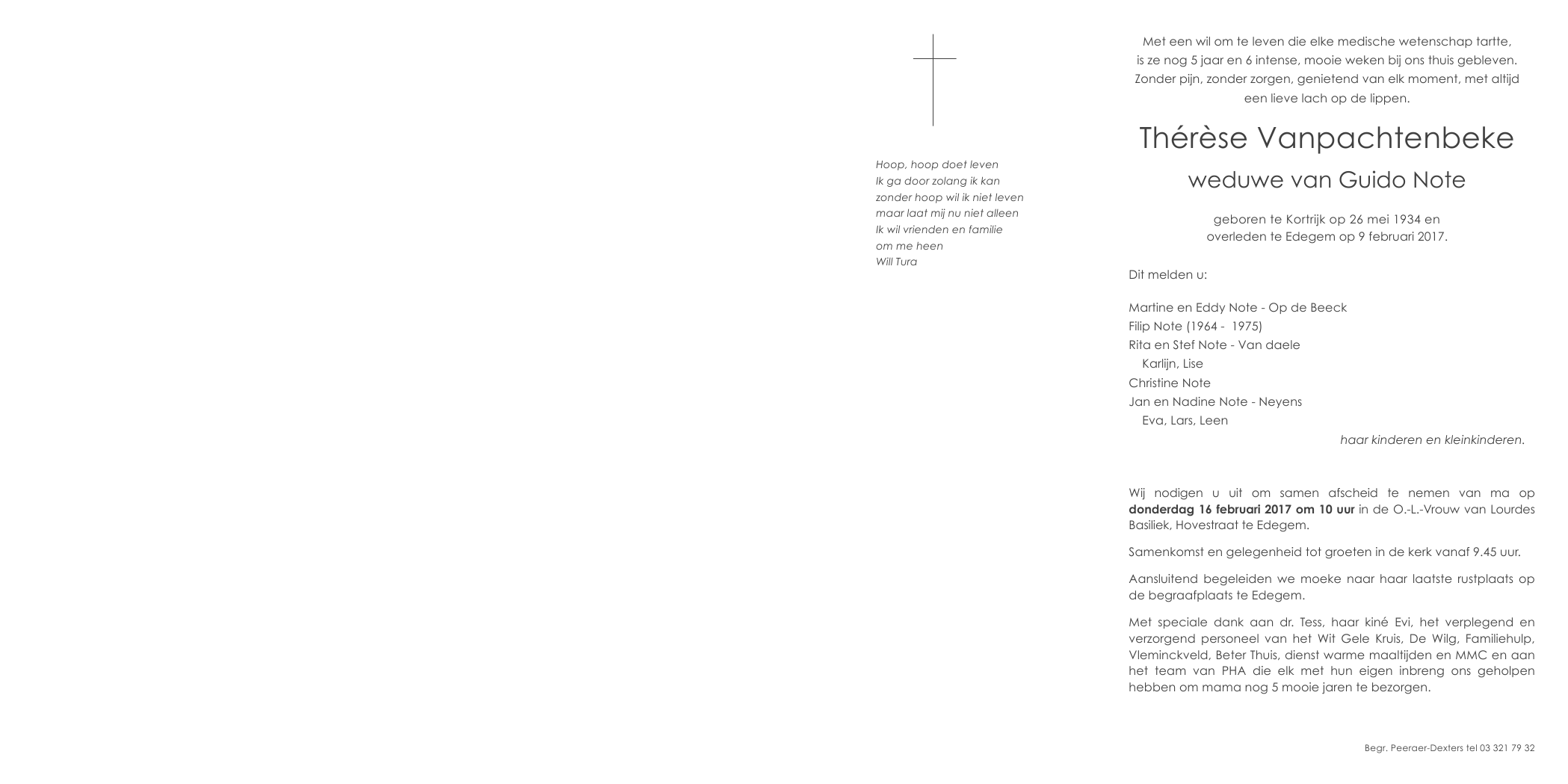 Overleden te Edegem (2650) op donderdag 9 februari 2017 op 82-jarige leeftijd