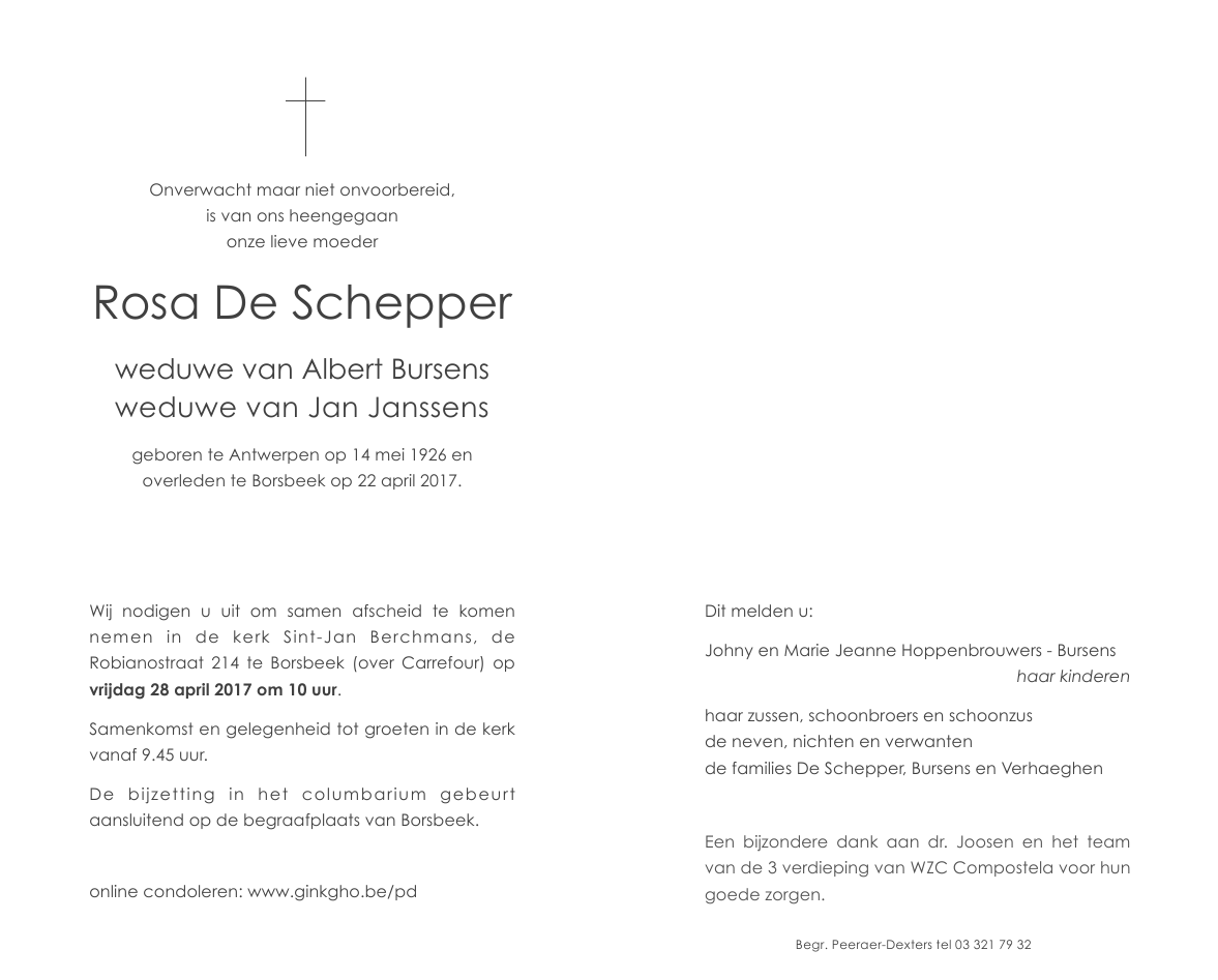 Overleden te Borsbeek (Antw.) (2150) op zaterdag 22 april 2017 op 90-jarige leeftijd