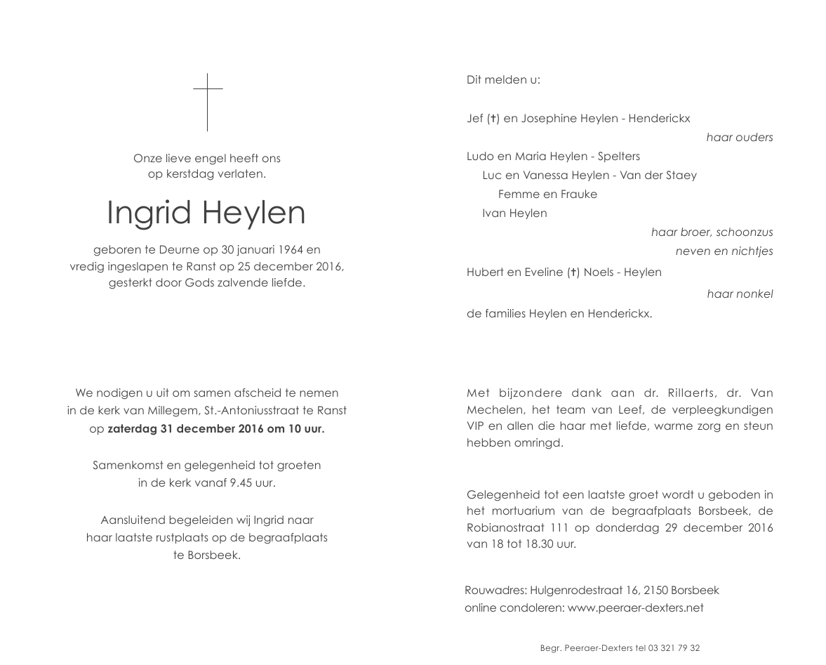 Overleden te Ranst (2520) op zondag 25 december 2016 op 52-jarige leeftijd