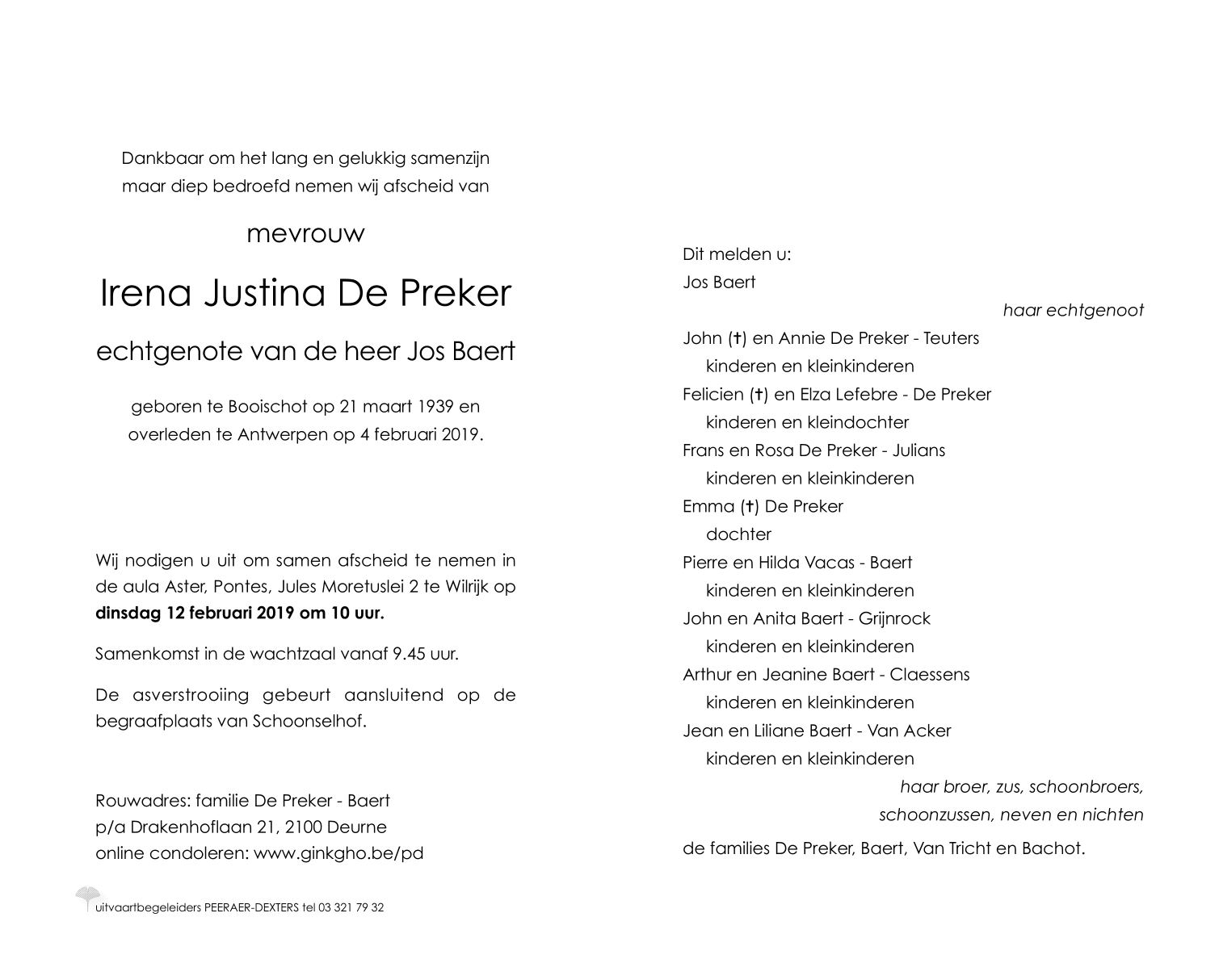 Overleden te Antwerpen (2020) op maandag 4 februari 2019 op 79-jarige leeftijd