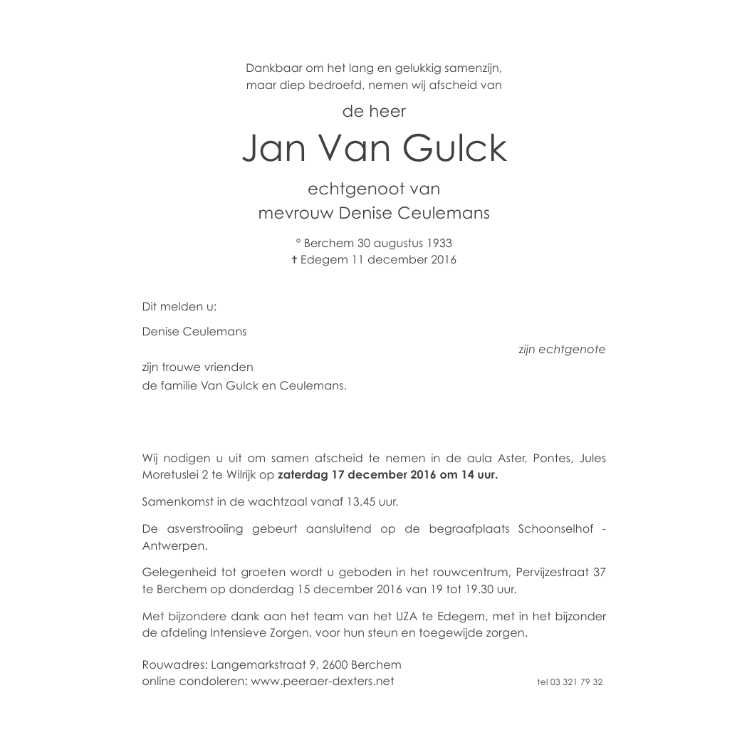 Overleden te Edegem (2650) op zondag 11 december 2016 op 83-jarige leeftijd