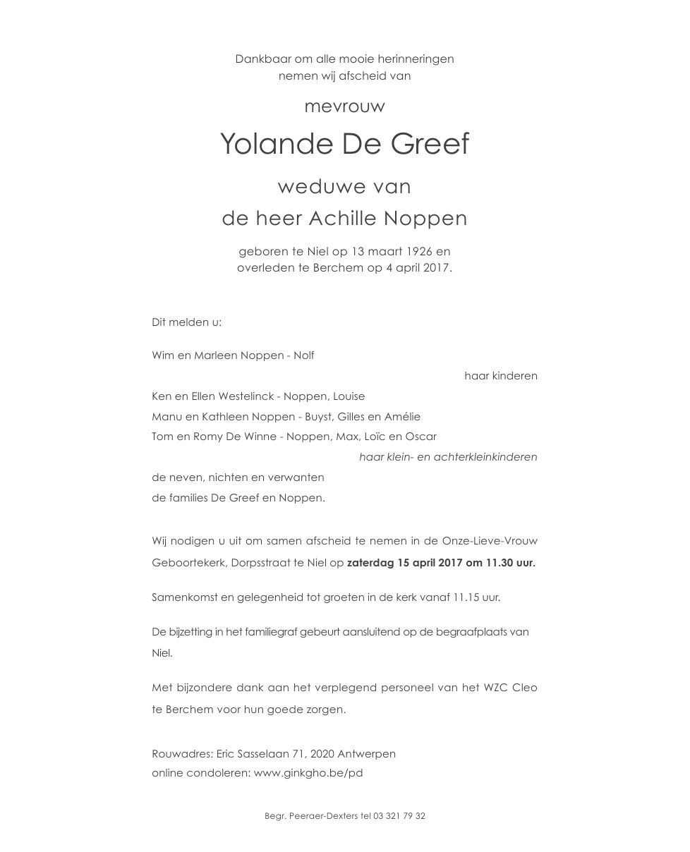 Overleden te Berchem (Antwerpen) (2600) op dinsdag 4 april 2017 op 91-jarige leeftijd